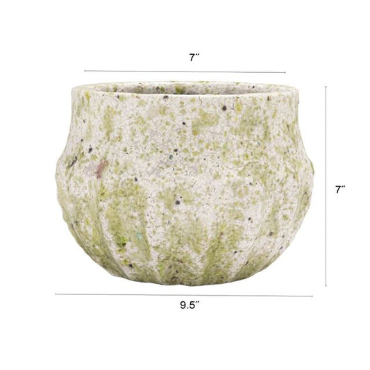 Cache-pot en terre cuite, émail craquelé, finition terrazzo - P