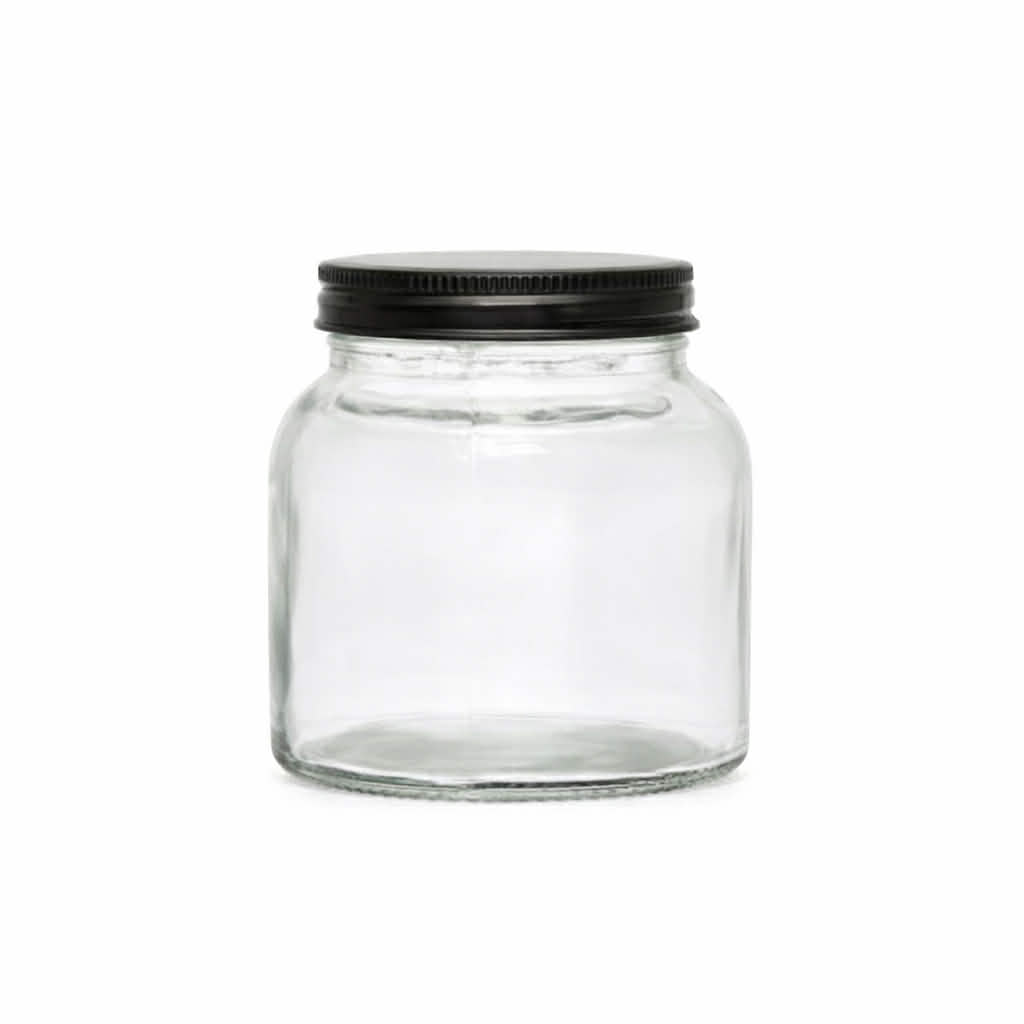 Son verre clair et épais assure une belle durabilité, tandis que son couvercle noir vissé permet une fermeture sécuritaire et pratique.