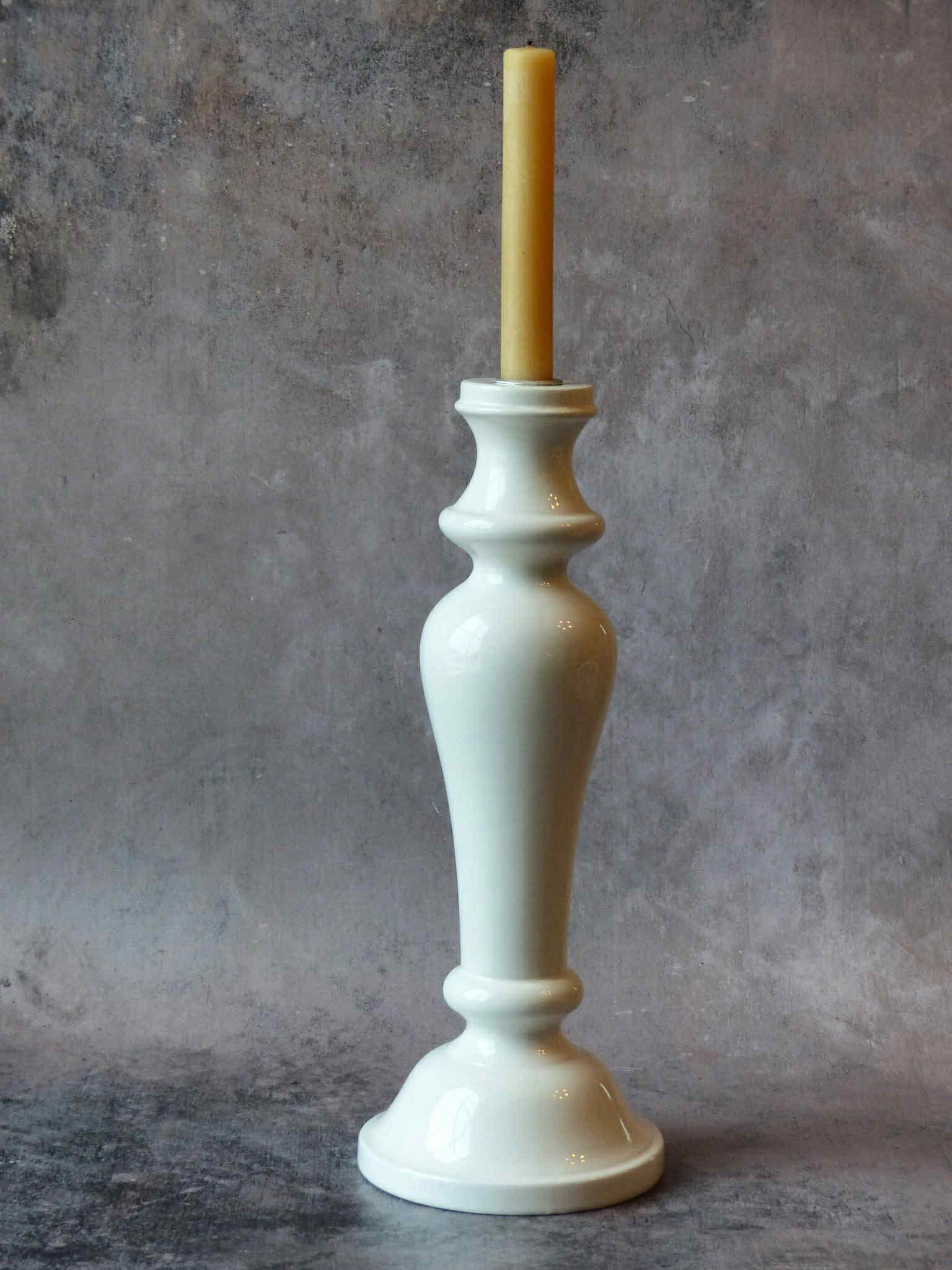 Élégant bougeoir en céramique émaillée de couleur blanche, au design classique et raffiné!