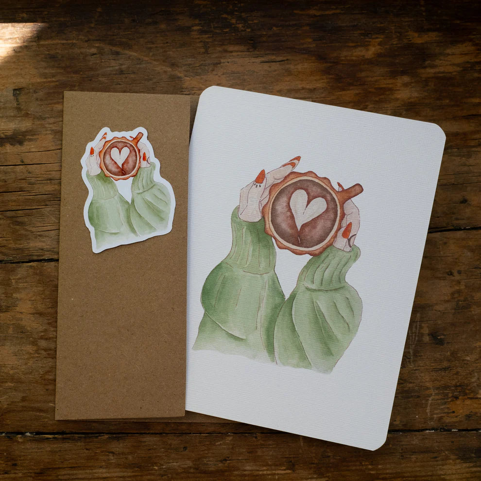Matériaux utilisés : papier cartonné texturé style lin, haut de gamme, impression numérique, aquarelle, enveloppe Kraft, autocollant vinyl mat pour décorer l'enveloppe.