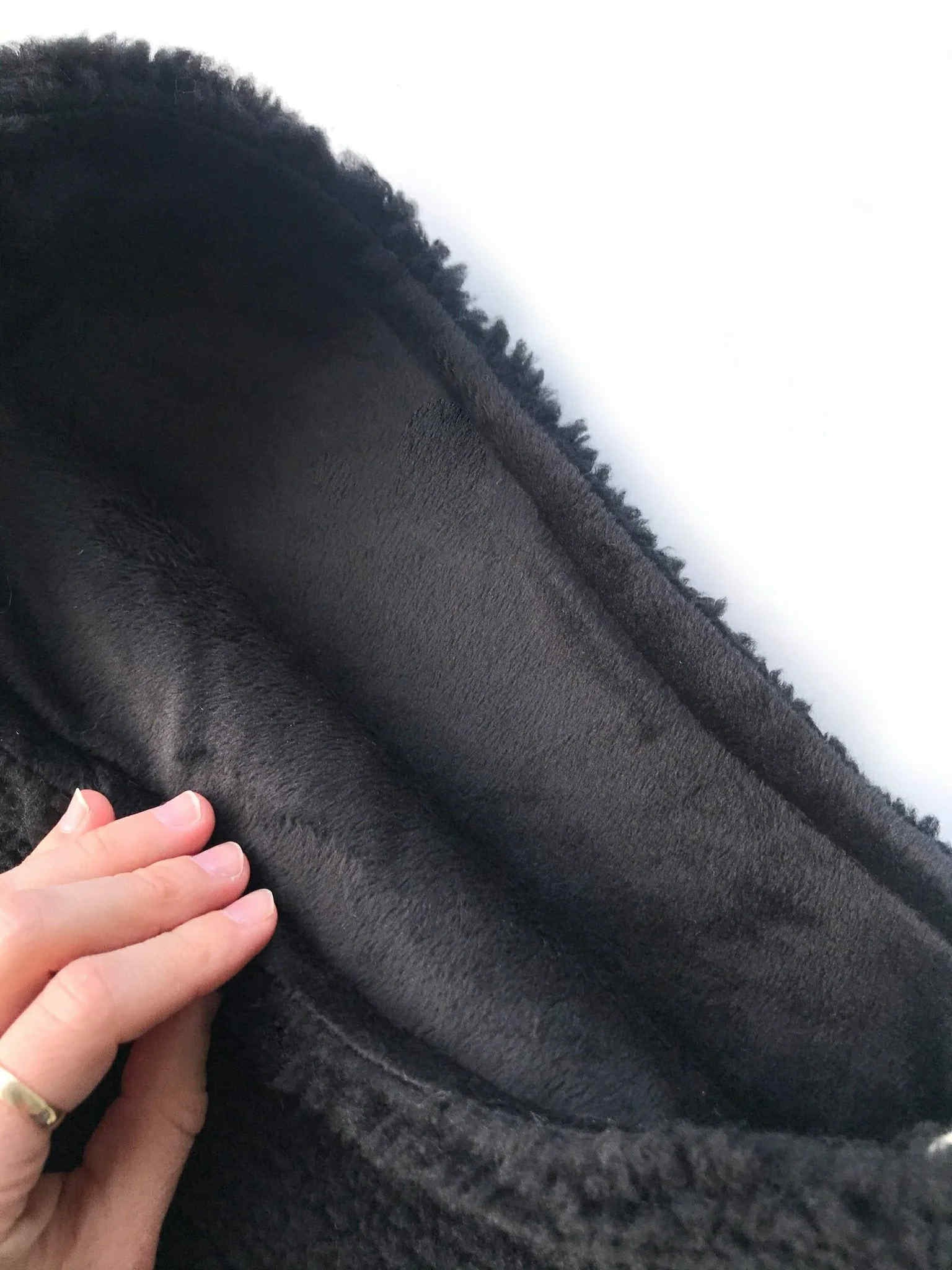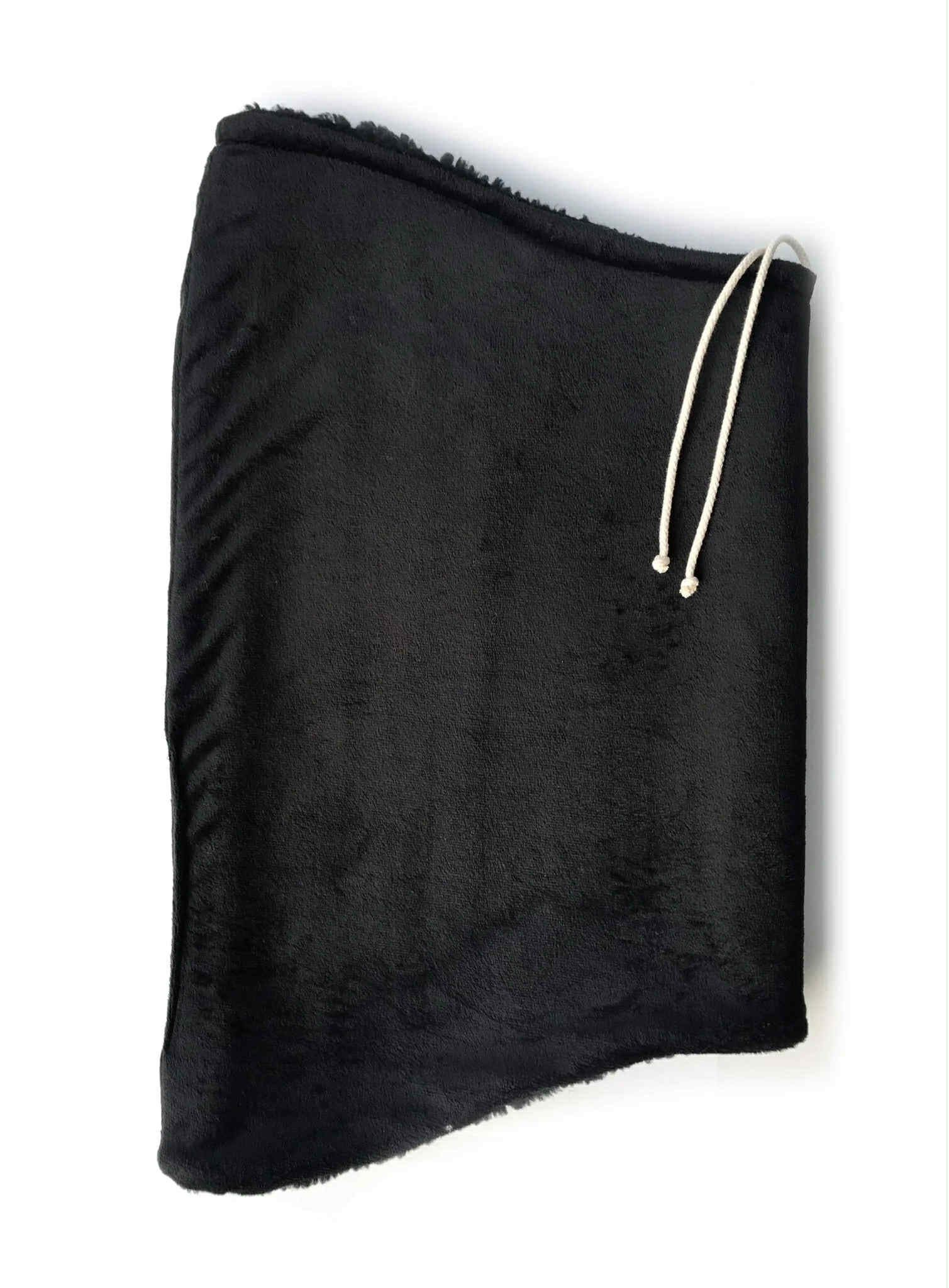 Cette capuche noire, entièrement doublée en velours ultra doux, a été conçue pour offrir un confort inégalé et une sensation d'emmitouflage. Réversible, elle peut se porter du côté velours pour un look sophistiqué, idéale pour une soirée, ou du côté classique pour un style quotidien. Polyvalente, elle vous accompagne partout, que ce soit pour vous réchauffer à l'extérieur ou pour un moment cocooning à l'intérieur.