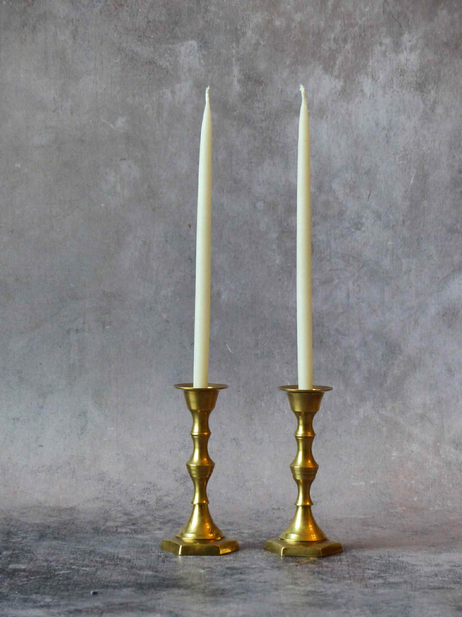 Élégante paire de bougeoirs en laiton, au design intemporel.
