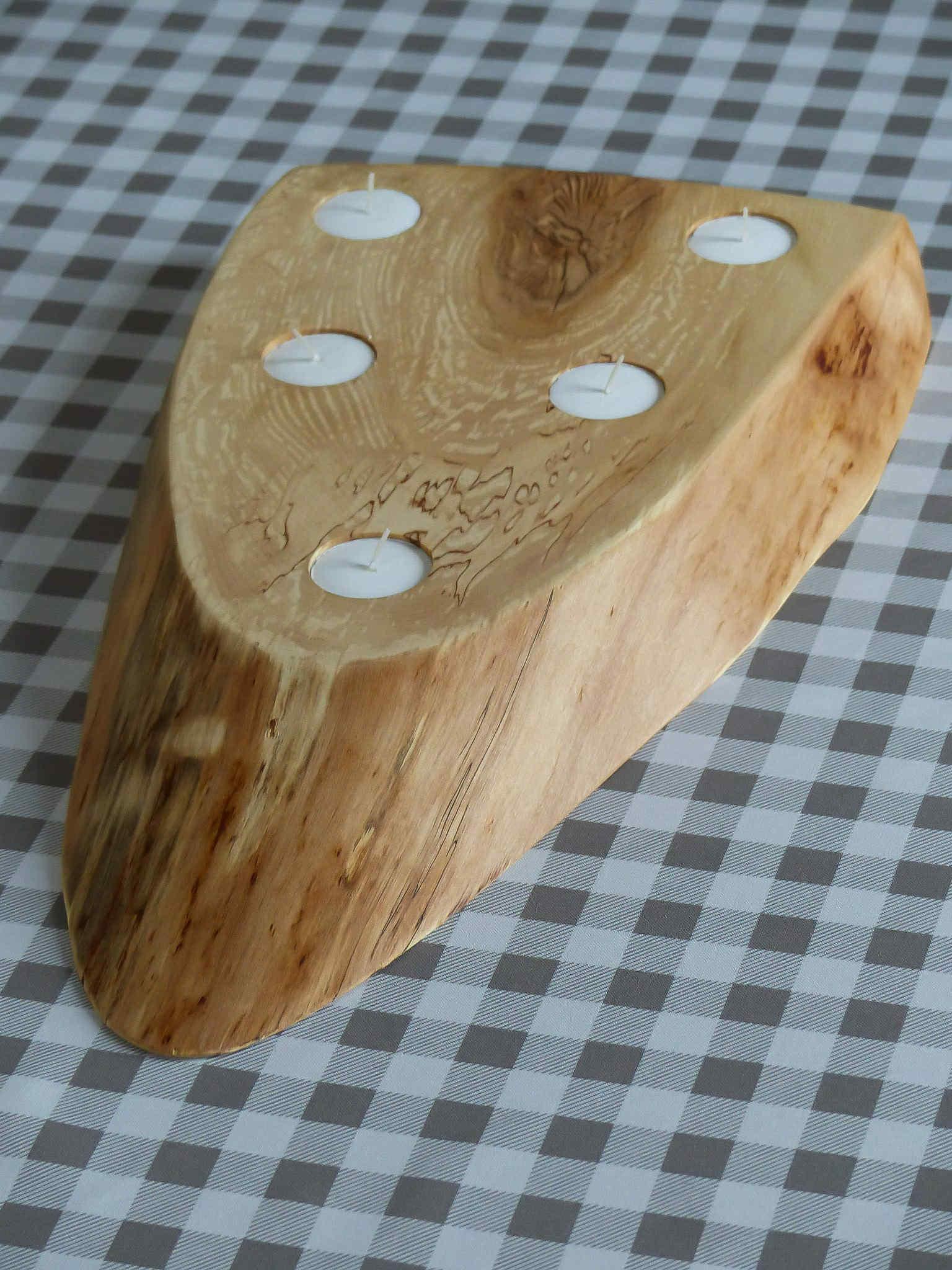 Planche porte bougies en bouleau chauffé et époxy